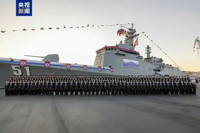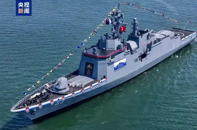 4月25日,新近建造的朝鲜人民军海军5000吨级“崔贤”号驱逐舰下水仪式在南浦造船厂举行。图源:央视新闻
